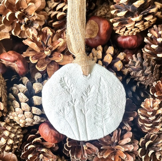 Floral clay hanging decorations - what a wonderful way of preserving the imprint of nature, when the leaf or flower is at it's most majestic, a moment in time captured forever.